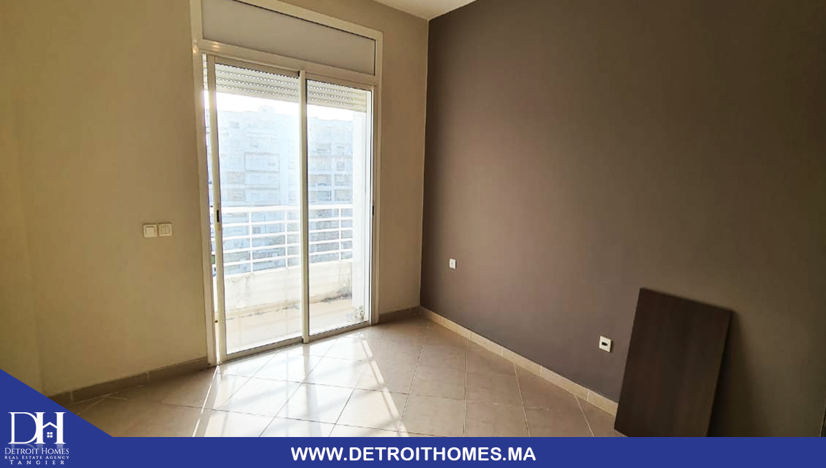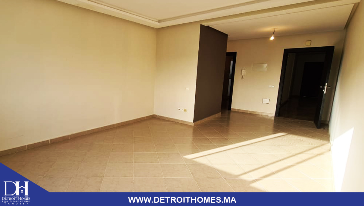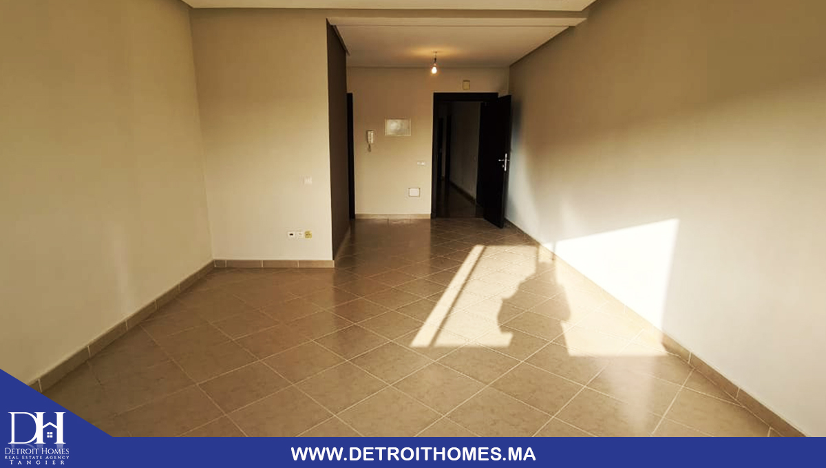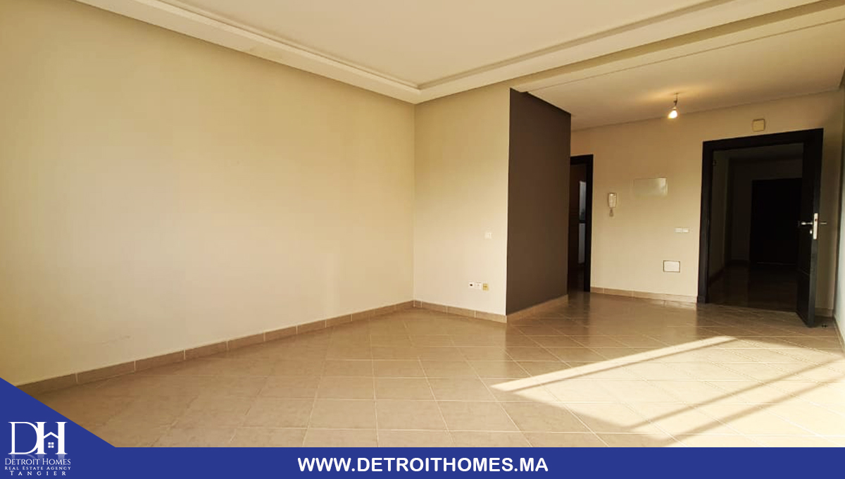 L'agence immobilière Detroit Homes de Tanger met à votre disposition un appartement vide trés bien ensoleillé à la location longue durée situé au complexe Lotinord, avec une superficie de 78 m² il se compose de 2 chambres à coucher, une cuisine avec buanderie, un salon, une salle de bain, une salle d'eau, un balcon avec une trés bonne orientation. la complexe dispose d'un jardin et espace de jeux pour enfant avec une sécurité optimale. idéale pour un jeune couple avec enfant.